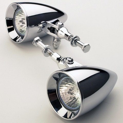 Headwinds®, the leader in custom headlights, introduces their new fork mounted spotlight kit for FLST, 39mm FXD (05 & earlier), 41mm FXDWG (05 & earlier), FXST and XLH. You will ride safer with a “triangle of light” provided by your headlight on top and spotlights on your forks. The triangle provides a greater light “footprint” that traffic will see! Easy-To-Install, their kit features 2”, 35W halogen Rocket spotlights, brackets and hardware, and EZ Plug™ wiring for a quick hook-up. The spotlights are made to match Headwinds headlights and turn signals but will compliment other stock or after market trim rings. Made by Headwinds® in the USA, They are available in all finishes. 626-359-8044 or headwinds@headwinds.com