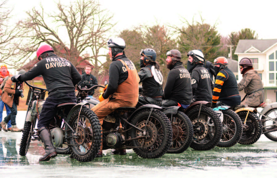 On Sunday, the entire crew was at the Iron Horse Hotel, where both Board to Death and McKeag Art were on display, having brunch when the call we all longed for came in. Ice Racing was on!! There was frozen lake about 40 miles away and the boys from the Frozen few aboard their 1916-1947 Harley flat track bikes along with many newer bikes were running. We stuffed everyone we could into the White Dragon and off we went. What a great way to round out a fantastic weekend in Milwaukee. For me Mama Tried is a must attend event and I highly recommend it to our snow locked east coast readers as well. There is nothing like seeing all these cool builds to spark and motivate that last push on your winter build. Spring is just around the corner and it will be riding time again, which reminds me, I need to finish my winter project so that I have a trusty steed to ride. I hope to see you all at Cycle Source’s Big Mountain Run this year for the fun and games, well on second thought maybe not, BMR, It’s really not the good… and also at “MAMA TRIED” next year… until then… cut, grind, weld and dream, see ya on the open road….