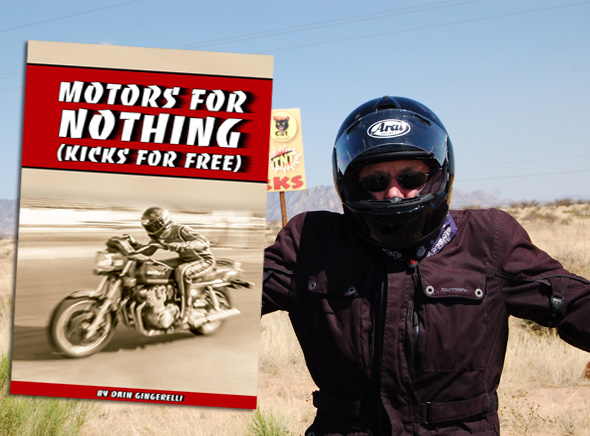 Motors For Nothing (Kicks For Free) is Gingerelli’s first e-book. He has authored nine automotive and four motorcycle print books, and he has been editor-in-chief for six national motorcycle publications. “My most memorable times in the industry, though,” said Dain, “were the eight years spent as Cycle Guide Magazine’s Sport Editor. And many of the tales in Motors For Nothing are from that chapter of my life as a motojournalist.”