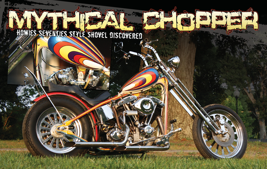Howie has his own carpet cleaning company here in metro Atlanta and one day while at a customer’s house, he found this rare beast of a bike just sitting in the basement. After a little small talk, Howie and the former owner struck up a deal. He picked this thing up for less than I spend on cigarettes every year; go figure. The bike was in boxes and crates but as Howie started piecing it back together, every nut and bolt was there. The only thing he had to replace was the primary belt, starter relay and the front brake line, the rest is all original. It took a few months to get this beauty back up running and road worthy but the time it did take was definitely well worth it. This bike is a legend in its own right and really turns heads everywhere he takes it. The bike was originally built by some cats up north somewhere. The story has it that it was in Easyriders in 1979. He is still trying to track down the info on the builder and what issue it was in. The bike still has its stock eighty inch Shovelhead motor that really pushes it down the road, and the stock four speed still puts all that power to the ground. I had the pleasure of riding this bike for a few miles and I can tell you that the narrow Paughco Springer really floats this chopper on the pavement and the Sifton brakes do a great job of slowing down the bitchin’ sundial wheels. Man, I have to tell ya, you just don’t find motorcycles like this anymore! The paint is what really sets this bike off. The hours it must have taken to paint every piece is just amazing! Even with the chips in the paint, it is still just a badass ride. Everything on this bike just flows together from the handlebars down to the wheels and the paint is the time capsule keeping it all together. This bike has class that’s straight out of 1979!