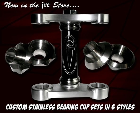 FRC’s custom bearing cups are designed & fabricated at Flyrite Choppers from high quality stainless steel. Sold in pairs for $118, or as a full kit for $148, the cup fits 1" FRC frames & most other frames with a 1” neck.
