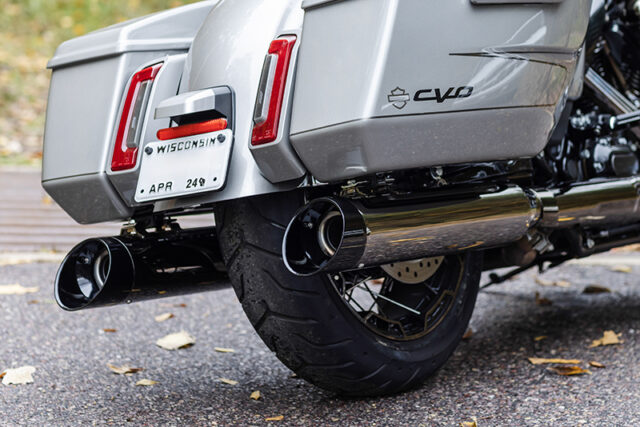 Your CVO deserves better than the stock mufflers that came on it. Our top-selling MK45 slip-on mufflers are now available in our Lava Chrome finish, which leverages the mirror finish of traditional chromium and gives it a smokey radiance, producing a very dark look while retaining the reflective qualities. The best part? They match the stock Scorched Chrome® headers for a uniform look, putting the “Custom” back in your CVO.