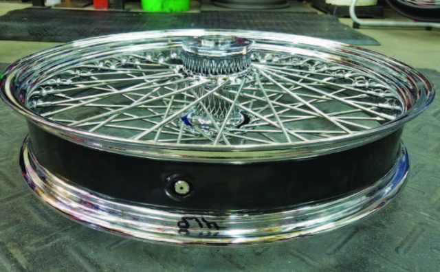 A local cat stopped by the shop the other day, he had just bought his fi rst Harley- Davidson and was interested in changing the look of it without breaking the bank. The bike is a 2009 Harley Bagger that is all decked out with lots of chrome Harley-Davidson® doodads and needed a front tire. So… I suggested to him that since he was going to buy a new front tire, he should upgrade to a larger front rim while we’re at it. This would be affordable and will give the bike a more custom look. So, Jason said make it happen. I jumped on the phone and ordered the necessary parts. I got with Alex out at DNA wheels and ordered up a 21 x 3.5/ 60 Spoke ABS front wheel and a couple of rotors. I also got the AVON 120/70/21 White Wall tire coming. For this month’s tech, we are going to make this happen. It is not just changing out the front wheel here; I am going to show you a few tricks and things to check along the way to make the addition of this larger diameter tire work as it should.