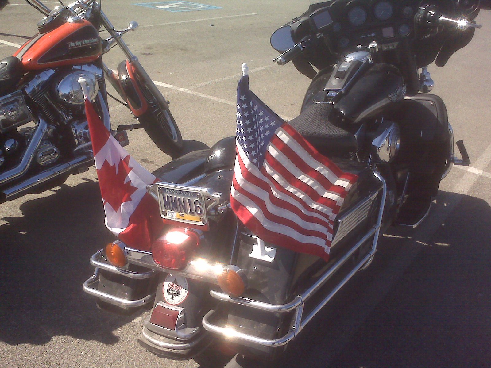 While stitching it up by hand in the parking lot of the craft store where I bought it, I was still amazed that I couldn’t just buy this item anywhere. I stopped by the local Harley-Dealer, Gatto in Tarentum, and low and behold they had the exact thing. So I guess as long as there are Harley Dealers our patriotism will remain in tact huh? Still think the rest of America needs to get with it.