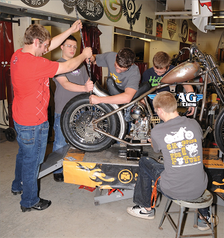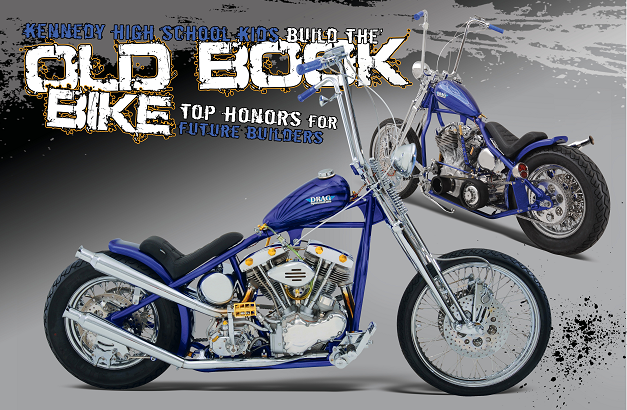As the good folks at Drag Specialties were putting the new and already improved catalog together for 2011, they realized one thing was missing; a cover bike! As Drag is based out of Janesville, WI, they had been to the Donnie Smith Invitational in (relatively) nearby St. Paul, MN, many times. In the course of attending the Donnie Smith show over the years, the Drag crew had become quite familiar with Kevin “Teach” Baas and his Kennedy High School Chopper Class. Drag Specialties had always wanted to get involved with the KHS Chopper Class and this was the perfect chance. Kevin and the kids were asked to tackle the honor of building the very first Old Book Bike, and they took the project and ran with it.
