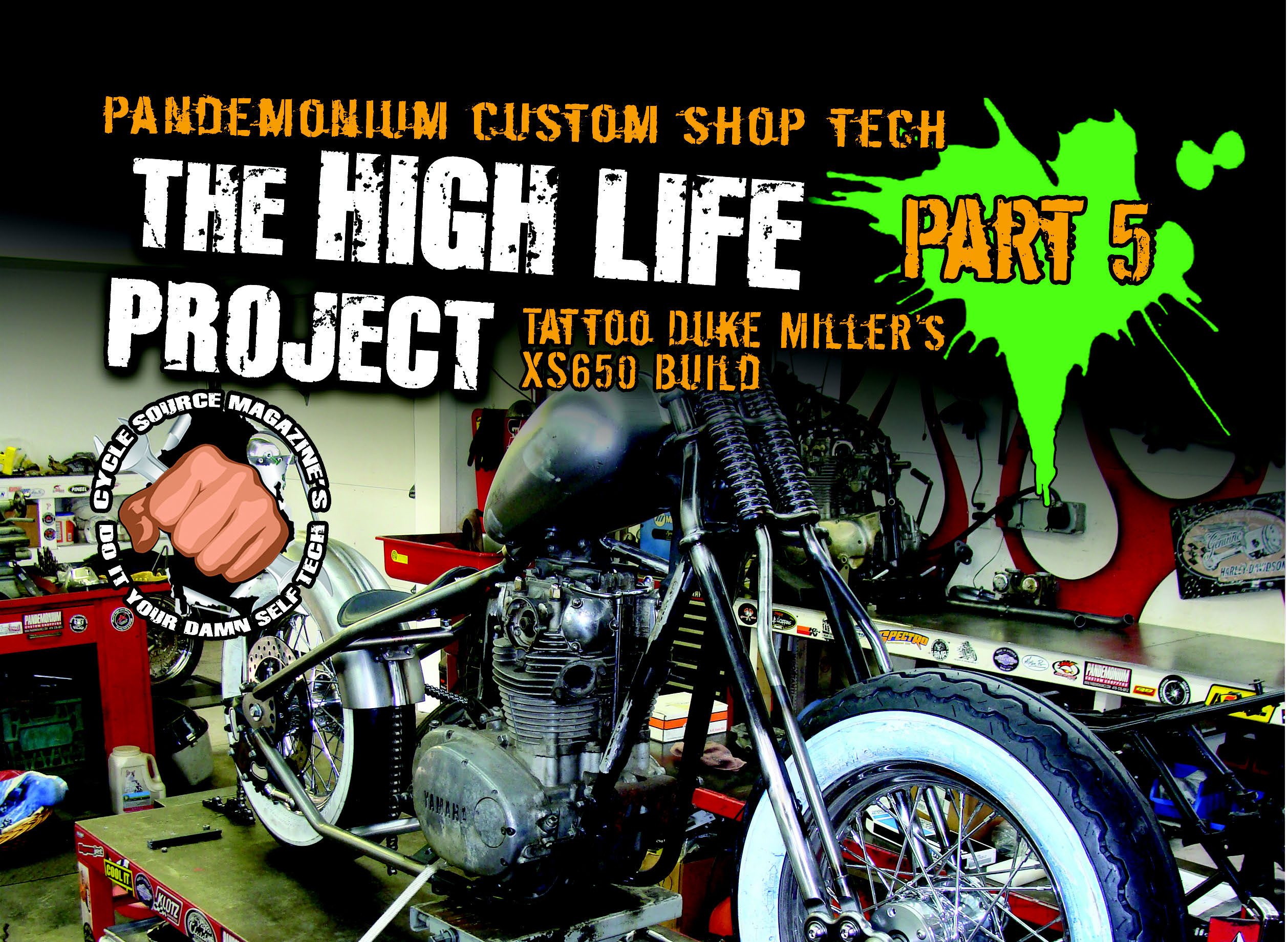 Within a couple of hours we had the High Life project in a lot of pieces! Here, Joe Schindler is prepping all the parts to go off to powder coat. Well let’s see, it looks like powder coating, final assembly and engine build are next on the agenda. I wonder if Hugh’s got any of those sweet re-phased XS650 engines available? Guess you will have to make sure you read next month to find out! Feel free to call or email if you have any questions: 419-576- 6812 or info@pandemoniumc2.com.