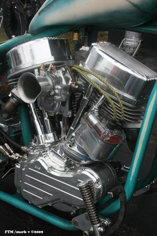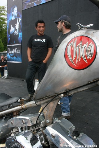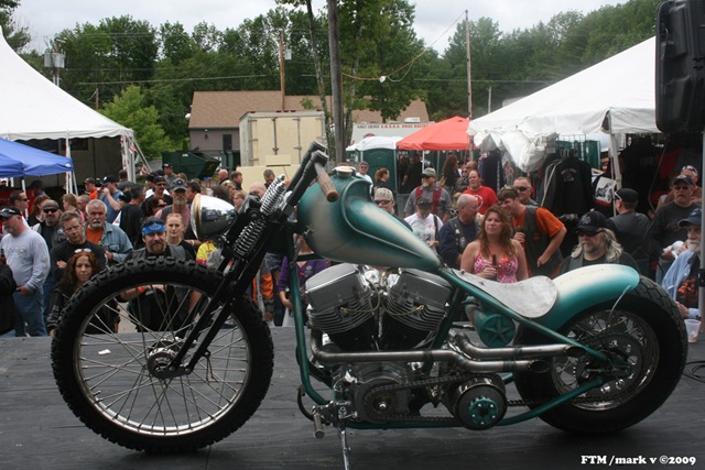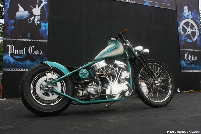 The winning custom was a rigid frame, constructed in a style only Paul Cox could create. Both builders worked tirelessly to build the bikes in only two weeks in time for Laconia. Chica burned the midnight oil in order to have his bike shipped to Laconia in time for judging to begin, and both Cox & Chica had to work on Cox’s bike on Friday to get it up and running in time for Saturday’s Shakedown ride. Both bikes ran flawlessly on the Shakedown Ride – the builder would have been deducted points if the bike broke down – which was a rare opportunity for the public to ride side-by-side with the contenders.