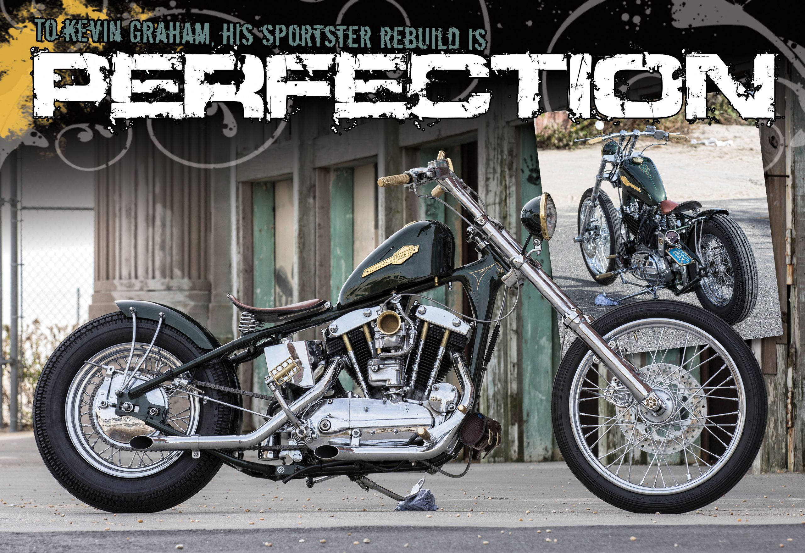 Needing something to take away the loss and keep him grounded,  his wife suggested that it was time he take on a feel-good project to keep his mind busy. Not being a builder but a pretty good wrench Graham thought it would be a good time to re-build the Sporty and make it truly his own. And so, it began. He was on a budget but didn’t want to cut any corners. He began the teardown with the removal of the engine and tranny. Kevin went to Chris Freda over at Design Worx Customs and with a little guidance from Chris turned it into a hardtail with a 4” stretch in the rear. With the main frame modifications done, it was time to get the engine back in place. Keving wanted to keep her as stock as possible but did work out some upgrades which included cams and push rods by Andrews, Manley valves, a Magneto ignition and of course a S&S Super E carb. For the rest, you can hit the spec sheet. When all was said and done, it’s a pretty bullet proof engine that just keeps on ticking.