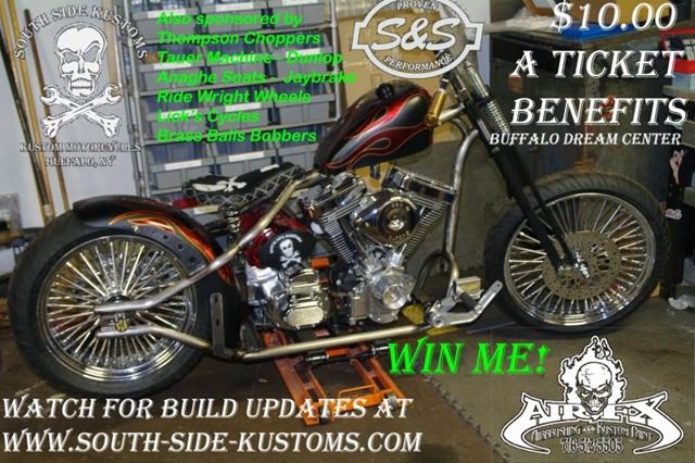 The First Production of the Hitman bobber (new base model) to be raffled off July 31st 2010 at SSK’s Rumble in the City Event (you do not have to be present to win). Tickets are ONLY $10.00 each or 3 -$25 and benefits the Buffalo Dream Center (www.buffalodreamcenter.org ) . See build updates here – http://www.south-side-kustoms.com/HitmanBobber.html