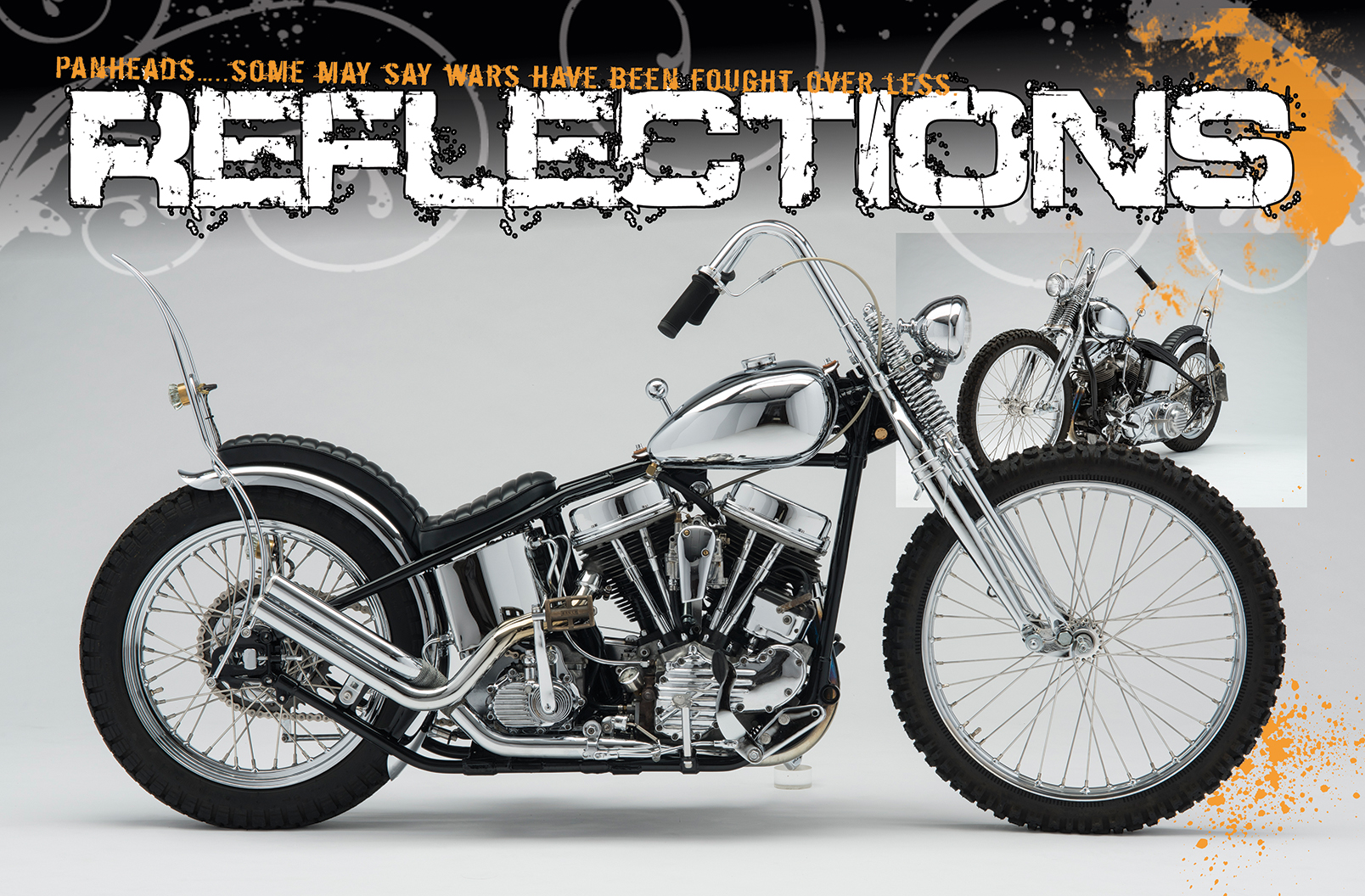 Nestled in the sissy bar rests the brake light conceived from an antique glass door knob. The housing was machined by Zack to accept a more modern LED for an eclectic feel. Zack makes his own seat pans to fi t his personal riding position and believe it gives the bike a more original feel. The bike is set up perfectly with fl owing endless curves and a styling that is right on point, making the 52 Panhead a choice lane splitting bobber. The aggressive tires offset the black powder coat and chrome motif and slightly hints towards the Enduro bikes of the early seventies. The 52 Panhead was fi nished just in time for this years Artistry in Iron show and Zack was honored to set his kickstand down amongst the few greats in attendance at Las Vegas BikeFest this year. Since the show the chromed demon hasn’t had much time to cool down. Zack intends to ride this little rebel all the way into the end of the Pittsburgh riding season and doesn’t promise on stopping then either.