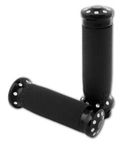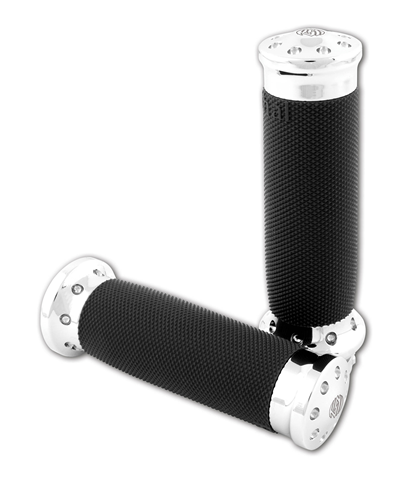 untitled Roland Sands Design introduces their new Tracker Grip. Wrapped with Renthal™ rubber to ensure that your hand never slips off, no matter how hard you twist the throttle of your dual cable or electronic throttle cable control. These grips feature RSD speed-dots to compliment your RSD Venturi Speed 7 air cleaner and RSD wheels.