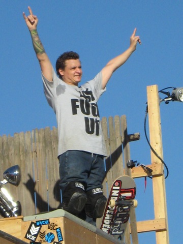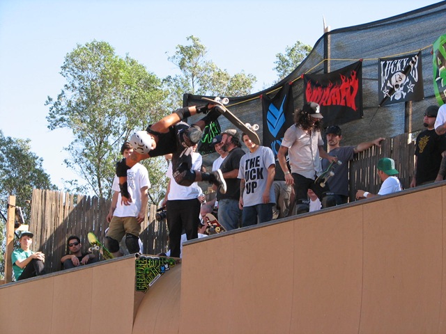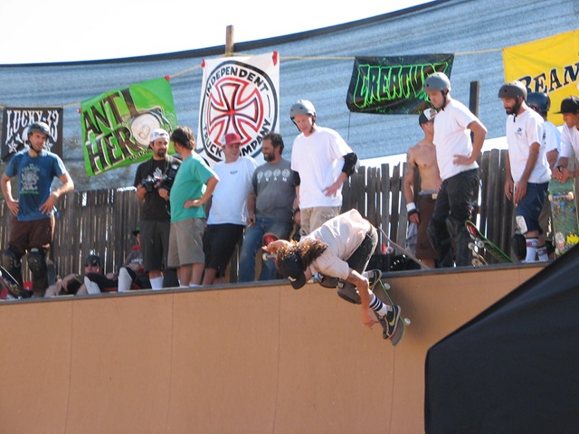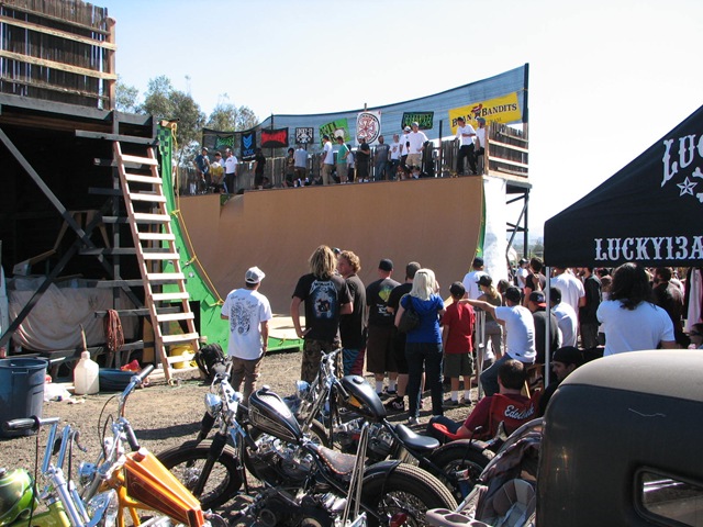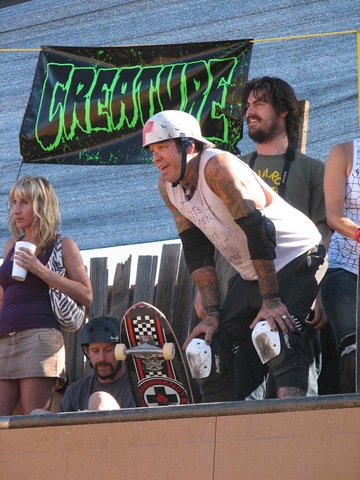 Rumble in Ramona took place on private property, in Ramona California. The event was sponsored by Creature Skateboards and it ruled. They built a ramp the was 44ft wide and 11ft tall. This thing was sick!!!!!!!! There were many well known skaters there like Duane Peters,Christian Hosoi, Eddie Reategui, Mike Crum and Max Schaff to name a few. The bands, JFA and Duane Peter’s Gunfight were tight and loud. All in all, a great day spent in the sun.