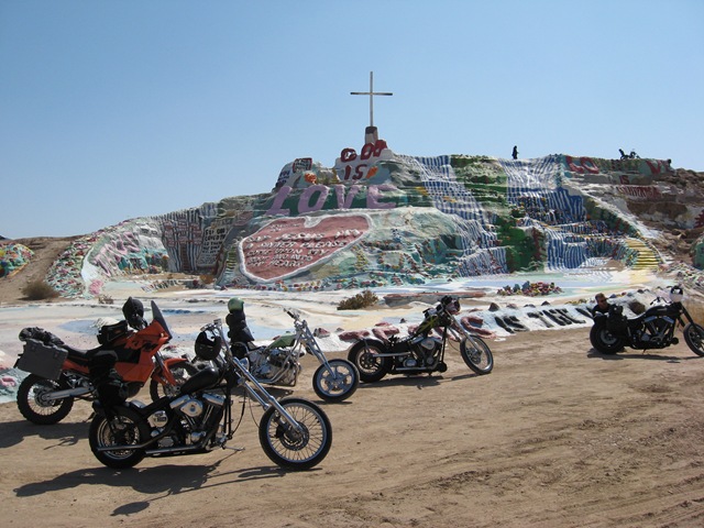 From Duane BallardIMG_5741                         Every few months the Biltwell Inc. guys plan a 24 hr. road trip. The last one was a run out and around the Salton Sea area. Twelve of us met up at the Biltwell compound at noon last Friday and headed out. We took the long way through beautiful forested canyons until we reached the desert.