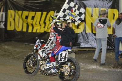Reading, PA – August 8, 2017 – Fast. Faster. And Fastest! Well, the results are in, and Briar Bauman won the American Flat Track TT twins race at the Buffalo Chip in Sturgis Sunday night. Briar is the only rider to beat the Indian team this year and now he’s done it twice. Briar rides a Kawasaki for Zanotti Racing.