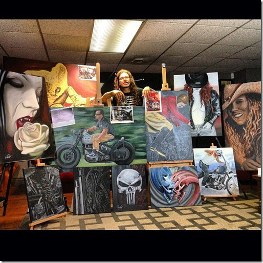 Chris is the editor of Cycle Source Magazine and has become a leader in our industry through his energy and inspiration. When it comes to his art all of that becomes focused. He is an artist on so many levels from desktop publishing, music and fine art. For the most part he works in oil, using a combination of broad bold strokes and refined finishing to give his art a very unique look upon completion. Chris also works in konte crayon, chalk and charcoal, colored pencil and metal engraving. You can see a wide variety of this contained in his section at the Sin City Gallery.