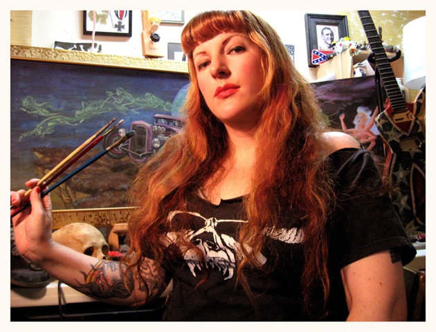 pinups, rockabilly posters, nose art and World War II scenes. Her artwork