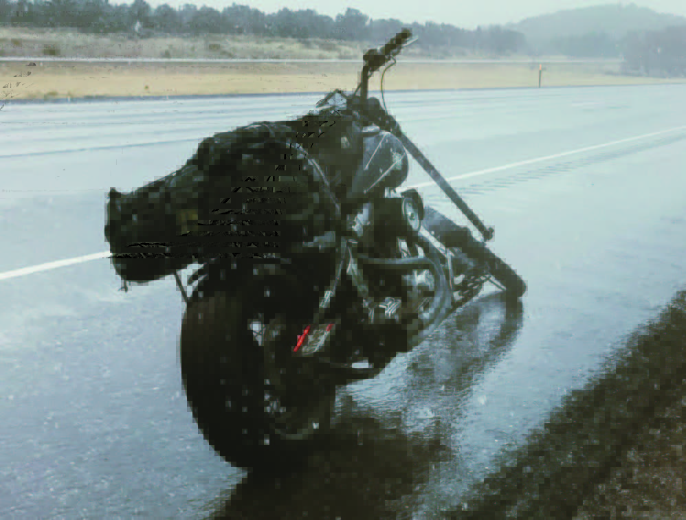 The rain came down in sheets and the deep ruts from heavy truck traffic became rivers. As visibility worsened, edging on dangerous, I slowed to 50 miles per hour. My altimeter was still clicking up and up. It wasn’t long before the thunderous drumming of rain drops on my visor went silent; snow is considerably quieter than any rain. The temperature was now at 30 degrees, my breath quickly fogged my visor with every nervous breath. Cracking the visor open a touch, as that’s the only solution to defogging, is a double edged sword. The gain in visibility comes at the cost of icy cold moisture on your face. Soon the torrent rut rivers I had been avoiding were now my safe zone. They were the only tar colored stripes on the road. The rest had turned white, and white is a no go zone. I pressed on, relentlessly wiping snow from my visor as the flakes were now thick and heavy. Ice was building up on the front of both myself and my motorcycle. Occupants of passing cars stared in disbelief as they adjusted there climate control and cranked up Celine Dion’s newest album. Soon, through the white of everything around me, I spotted the green sign declaring that I had crested the top of the pass and subsequently signaled my soon to be drop in altitude which I assumed would bring some relief. I was wrong. Very, very wrong.