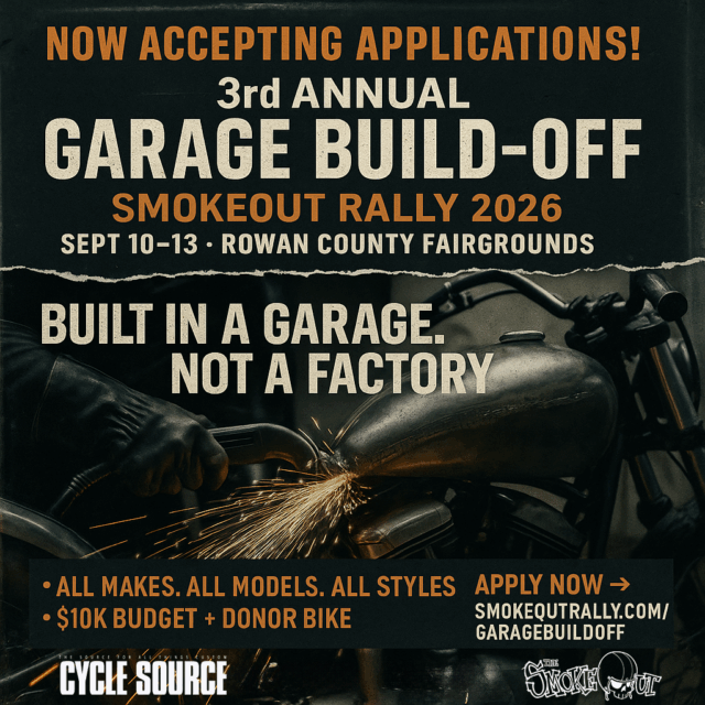The legendary SmokeOut Rally is proud to announce that applications are now open for the Third Annual Garage Build-Off, an evolution of the old-school Amateur Chop-Off that keeps the same grassroots spirit alive — but updated for today’s custom motorcycle culture.