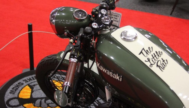 Sofi of GT-MOTO builds custom sleds from the 70’s and 80’s. The Little Rat is a restored 1980 Kawasaki KZ440. It fatures a Harley headlight, custom tail section, mono Hagon rear shock, handmade foot controls and ride height adjuster.