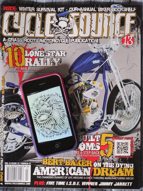 I have to tell you my latest jaw dropping experience with Cycle Source Magazine. I always look forward seeing that big brown truck dropping my ever growing supply of Cycle Source every month. Everyone knows that I get the first copy and head into the house to check it out. Looking at the cover, I start wondering what in the hell is this box on the cover? Well folks,that would be Chris’s newest step in our social media presence the QR Code.
