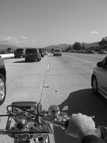 I had the opportunity to go on a small 70 mile ride with the guys from Biltwell and Duane over the weekend. On our way there, there was a accident that had the traffic at a stand still but here in California you can split lanes. Coming from New Hampshire, where this isn’t allowed, it has always frightened me when a bike comes flying between me and another car and I get walked doing 80. When done carefully it gives you a way to avoid traffic jams and possible over heating issues. If you are ever near the Inland Empire and are looking for a cool ride, check out the Biltwell blog. They always have something going on and know the best “off the beaten path rides” with great views.