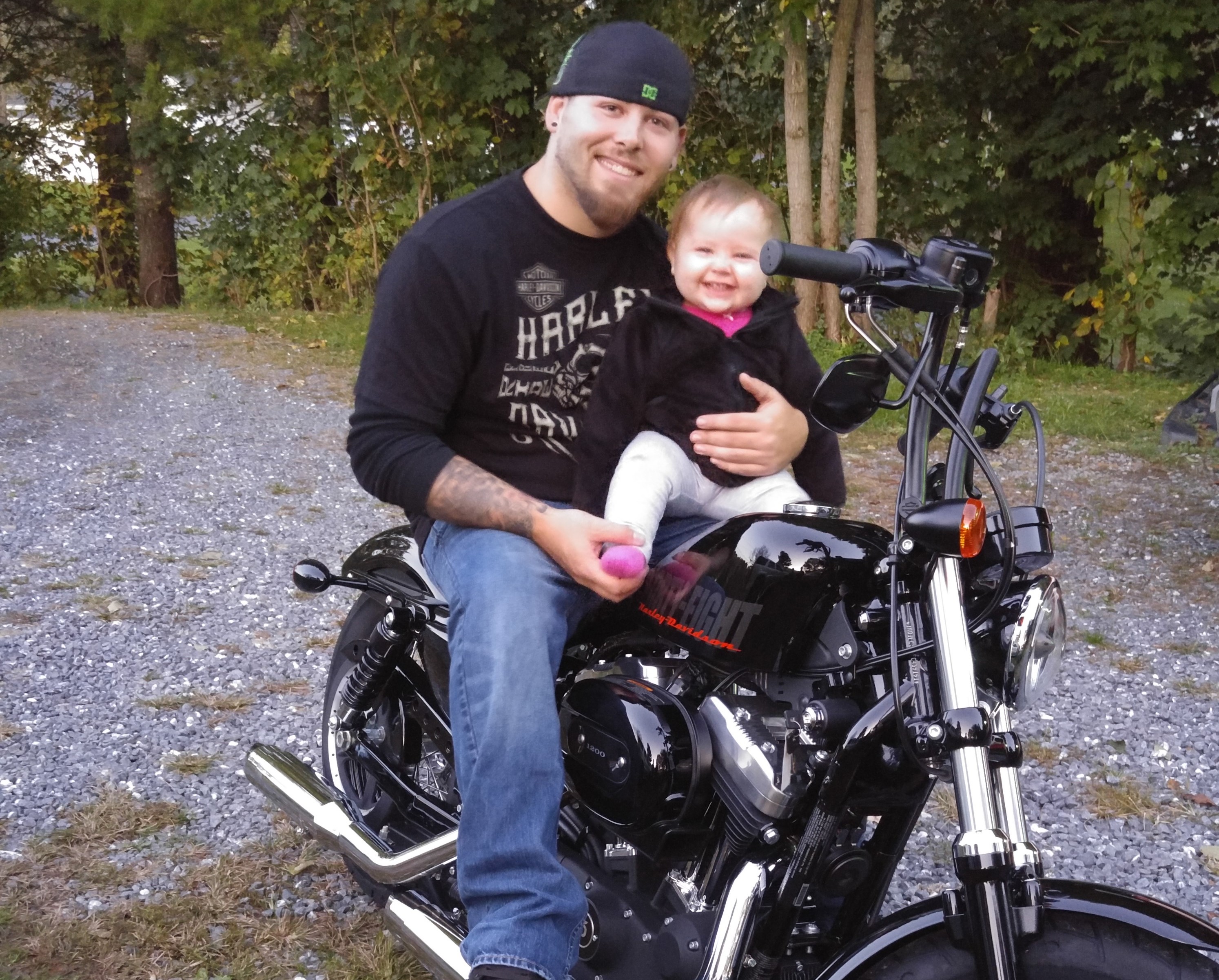 Full time at assistant manager at local parts store and last year he was blessed with a beautiful daughter farrah. other than that he considers himself pretty much a normal dude. He once had big dreams of building a bike this year but 55 hours a week and a new born didnt give him time so he picked up a 2015 48 sporty and has been tearing into it. His goal for this bike is to make you think twice when you see, it’s that a new bike with old school love or old school with new school touch.