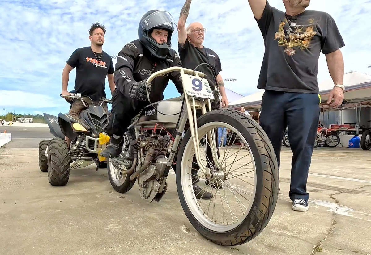 He has ridden that Pan cross-country, from Cottonwood, Arizona to North Carolina. Rain did not matter. At 7 a.m., the old bike idled in gear. The message was simple. Keep up.