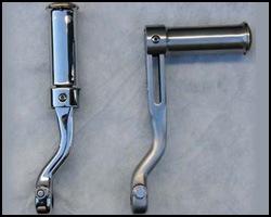 The days of the 19th century kicker are over. Tired of using those old kick arms that flop back to the kick position every time you ride? Nash Motorcycles have solved the problem. Developed and Patented by John Grant, these one of a kind kicker arms are like nothing seen before. Cast from a 174 stainless steel, and constructed with all premium stainless steel hardware. A brushed brass end cap tops off the kick pedal to give it that unique look. Machined into the arm are rare earth magnets that hold the kick pedal in place, when in the down position. Flips out, locks in, for a solid kick, flips back, slides down for a comfortable ride. Available in brushed and polished finishes.