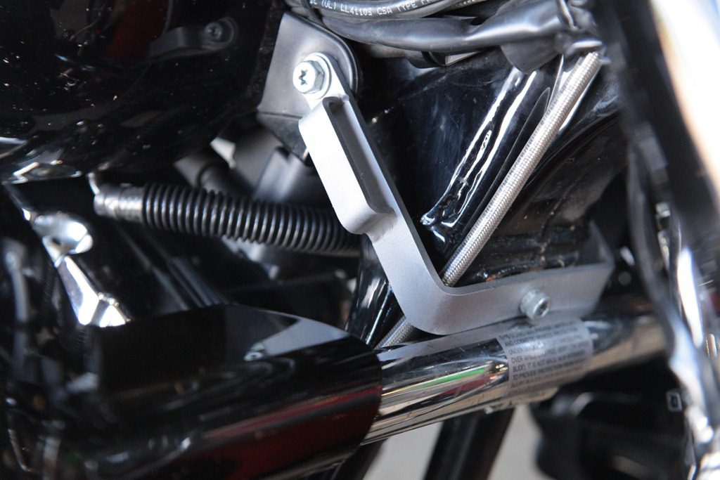 Check this out we all know that Tying down Baggers safely and securely for transportation is a cumbersome exercise at best. Kiwi Motorcycle Co has devised a method to safely and easily secure your bike. The Strap Down bracket fastens to the 2 lower front tank bolts and captures the top front crash bar bolt allowing your tie downs or soft straps to easily attach to their bracket. Strap Down bracket mounts easily in a matter of minutes. Comes powdercoated in invisible black to blend in with your frame.