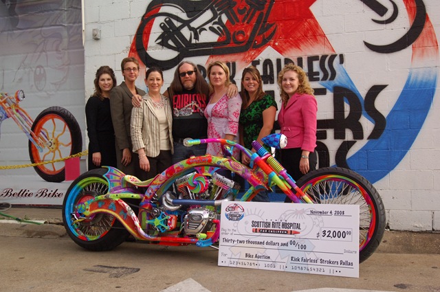 Rick Fairless’ Strokers Dallas and Miller Lite joined forces this past Spring with an idea to raise money for Texas Scottish Rite Hospital for Children (TSRHC). Raffling off a customized Harley-Davidson motorcycle, the two groups succeeded in raising $32,000 for TSRHC in just over 3 months.
