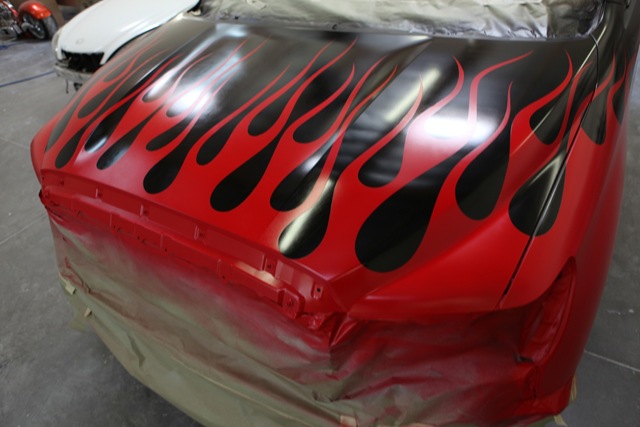 The Toyota Tundra was stripped bald at the Sucker Punch Sally’s manufacturing facility in Scottsdale, AZ and is receiving a total overhaul with new headliner, seats, panels, carpet and paint job complete with bright red flames. The finished product will be unveiled at SEMA, the premier automotive specialty performance products trade event in Las Vegas. Showcased within the hand built custom wooden flatbed will be the Sucker Punch Sally’s Triumph Thruxton. Custom-built specifically for Fender, the famed guitar manufacturer, the Triumph was fitted with custom parts and paint to make it look like a vintage Isle of Man Café Racer. The Triumph was originally unveiled at the Fender booth during the NAMM show in California last year and captivated all who had the opportunity to catch a glimpse of it.