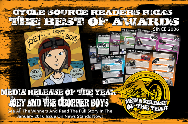 This year was huge in the arts and media portion of the motorcycle industry, and one of the biggest happenings was the release of our Media Release Of The Year winner. Written my Jessi Combs and illustrated by Kayla Koeune, this book is an inspiration not just to young women but to people in the industry everywhere and for that reason, we are proud to have named Joey And The Chopper Boys our 2015 Best Media Release Of The Year.