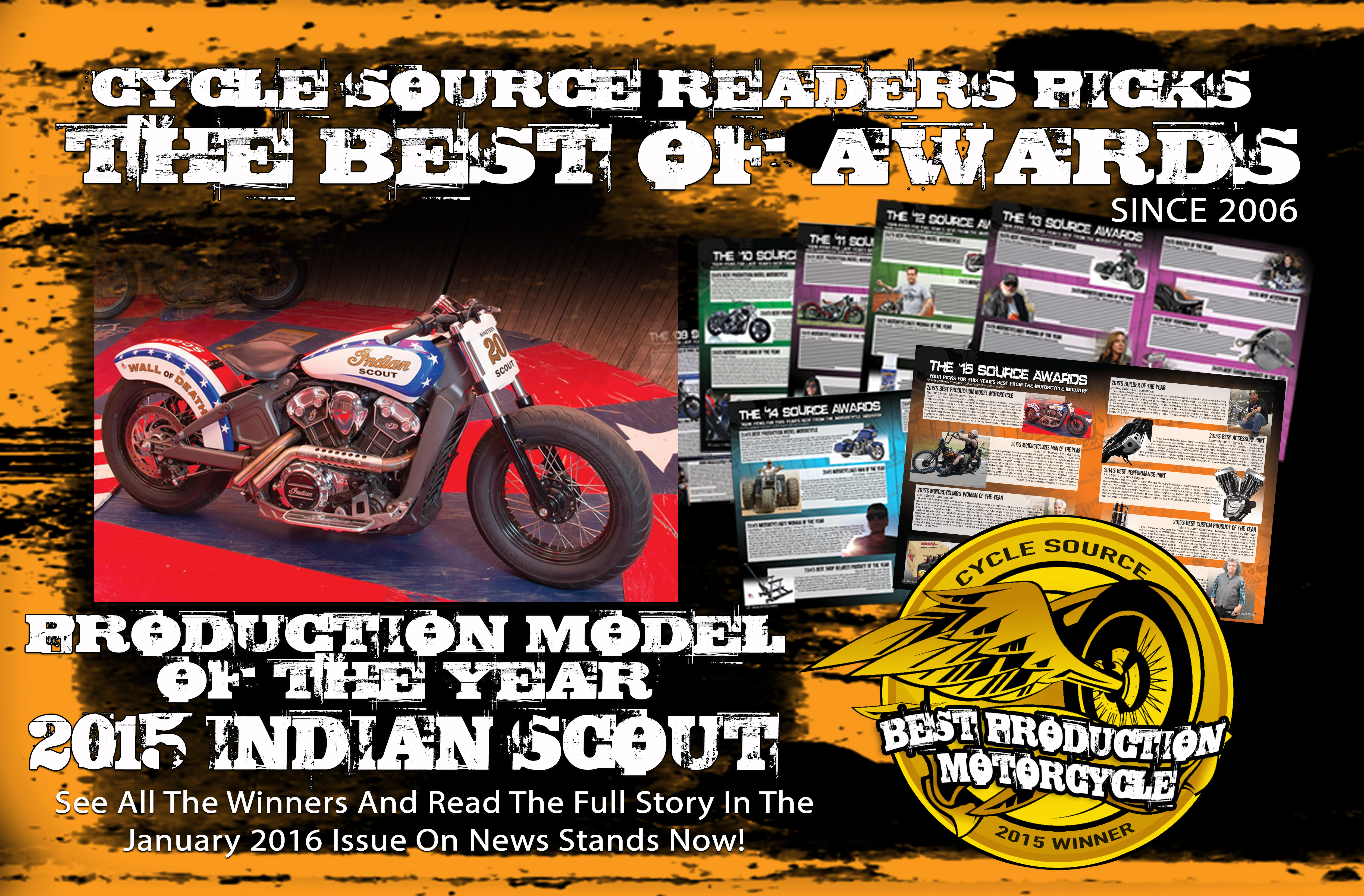 When Polaris Industries took over Indian Motorcycles back in 2011, no one knew that they would end up reinventing a classic that soon became our Production Model Of The Year. Pushed to the limit by the boys over at the American Motordrome Wall Of Death and turned over to the custom bike crowd, it’s no wonder we named the 2015 Indian Motorcycles Indian Scout our 2015 Production Model Motorcycle Of The Year.