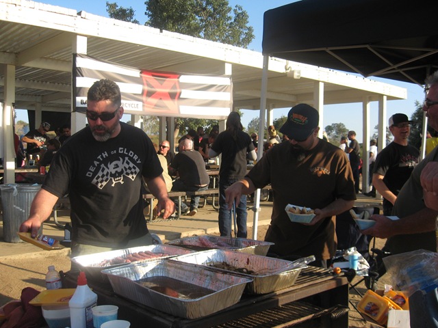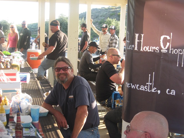 IMG_5610 On Saturday, Sugarbear and his wife Fuji stopped by to hang out. It was great to see them. Then later that night , Gabe from After Hours Choppers lit the grill and cooked some tasty viddles that the guys from Biltwell supplied.