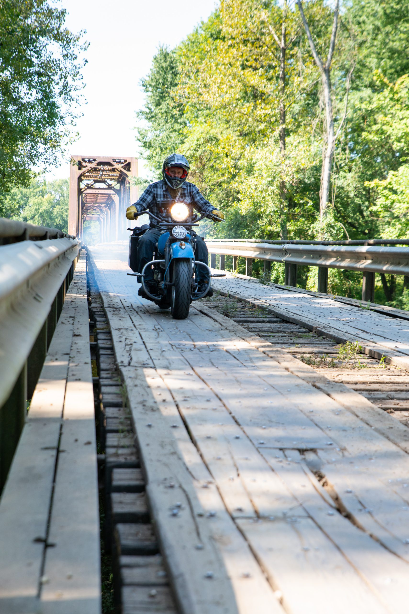 During Stage 4 The Chase riders had to cross the wooden Wabash Cannonball Bridge over the Wabash River between Illinois and Indiana. Monday September 9, 2019.