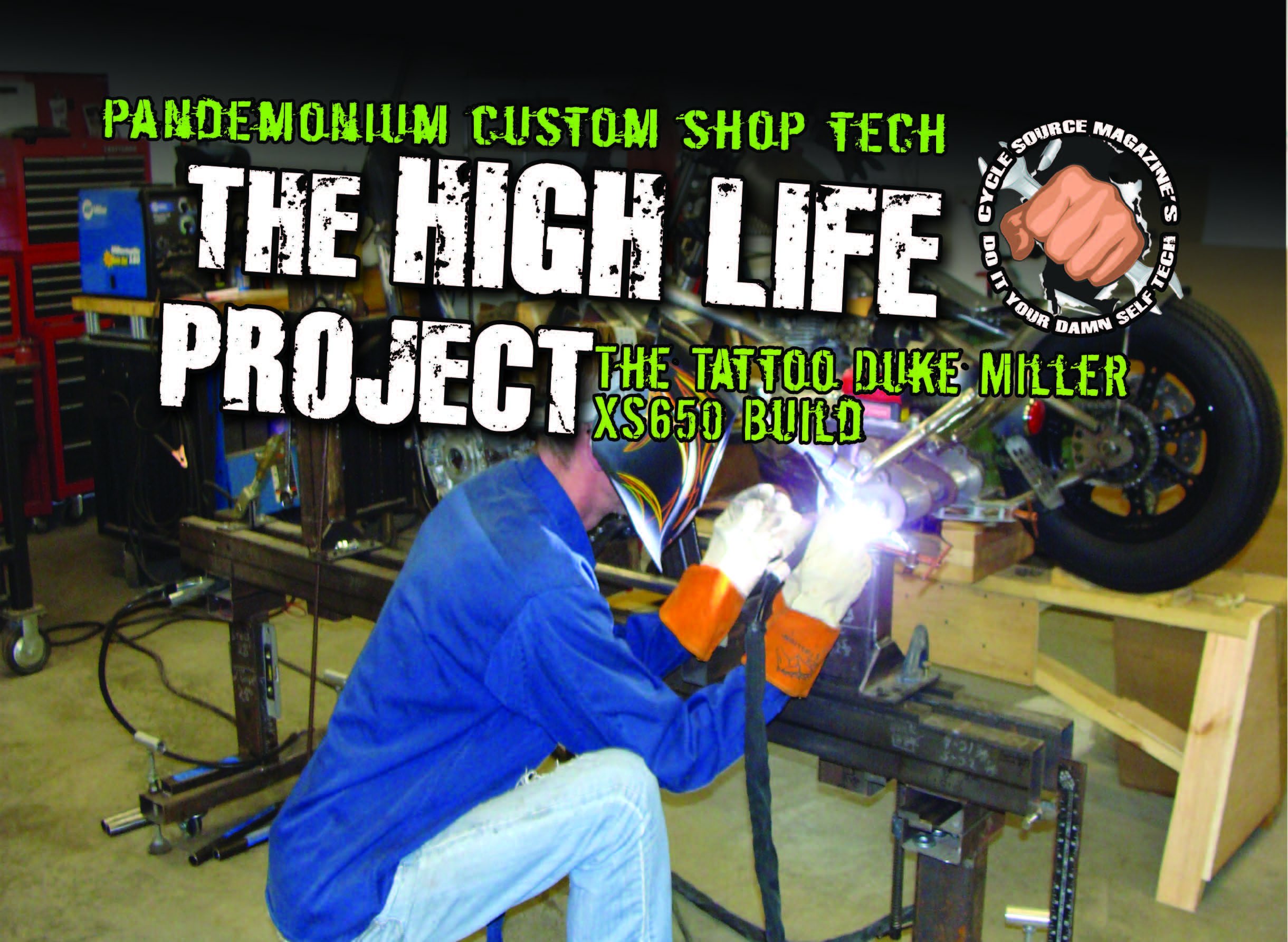 This all started last July at MountainFest in Morgantown, WV. Duke was checkin’ out a Yamaha XS650 build I just finished named Nekked Hayla. He said, “Man, I’ve been thinking about building something like this to beat around the streets on as a birthday present to myself.” One thing led to another, and we started on Duke’s XS650 build. It was then that I decided to show it off here in Cycle Source. We are gonna use some stuff from Acme Choppers, Hugh’s Handbuilt and Red Tail Leather, just to name a few. It should be pretty cool so stay tuned for the months to come and check out The High Life project.