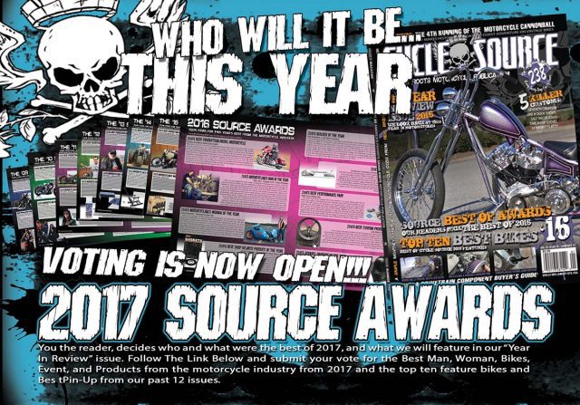 Welcome to one of our favorite annual offering from Cycle Source Magazine: The Year In Review Issue. In case you are new to our magazine we take the January issue each year to take a look back over the past 12 issues of the year in the life of the motorcycle culture. Additionally, we also have a two month process where we develop a list of nominees for you to vote on for a series of what we call the Source Awards. This is a small way for us to give a little credit to the people who make their livings from this industry, make art from it’s images, or have a hand in taking it to the next place. From the best builders, craftsmen, products and more, we leave it up to you, our ravenous readers, to decide who gets the much coveted “Source Awards” each year.