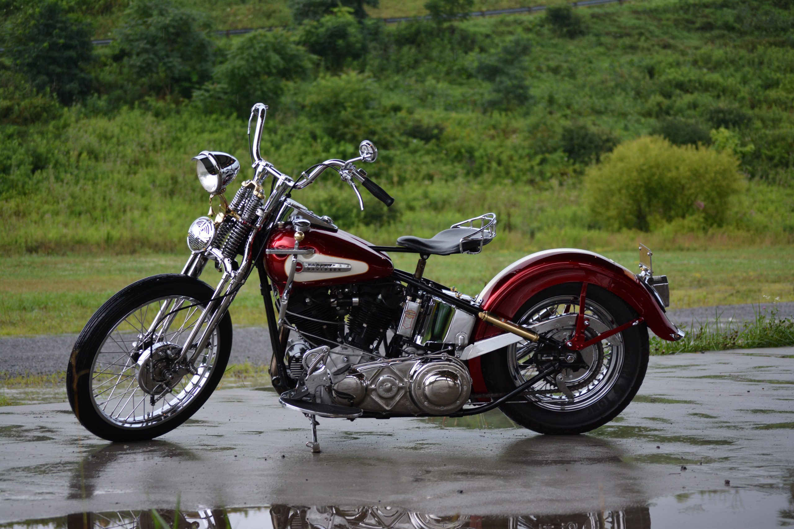 The seat rail was an afterthought. While out riding one day and running through the gears pretty hard, the shift to third slid him right off the seat and onto the fender. He had been thinking about doing one of those cupped, deep radius seats but then the idea hit him for the seat rail which most all of them had years ago. So he welded up some round stock got Hanlon platers, at a local company, to soak it in some shiny stuff. It works well and seems to blend in with the bike pretty good. They didn’t have a big budget for the bike, none actually, so they would save a little and buy a part or a tool as it went along and then would put something back for the next piece. Tim used to climb and trim or take down trees for people locally, on the side, and most of his “tree money” went into the bike. Every birthday, Father’s Day, Christmas…there was always something there for the Knuckle. He remembered one Christmas  in particular that his wife Susie had come across a rare AEE cast aluminum snoot/rock guard from a friend of theirs and got it for him. It caps off the old Linkert perfectly. It was a labor of love that took, off and on, right around 16 years to complete. Tim has always thought the “Knucklehead” was the best-looking engine Harley ever produced and says it’s a blast to ride, but the biggest reward comes when someone looks it over and says ‘Man, that sure is pretty.’ “ Tim and his wife Susie have an attitude that I wish more had when it comes to a build. Although finances were slight at times, their patience and commitment held fast. This perfectly executed Knuck was built from the love of the bike, not for dollar signs or celebrity. Today was a good day.