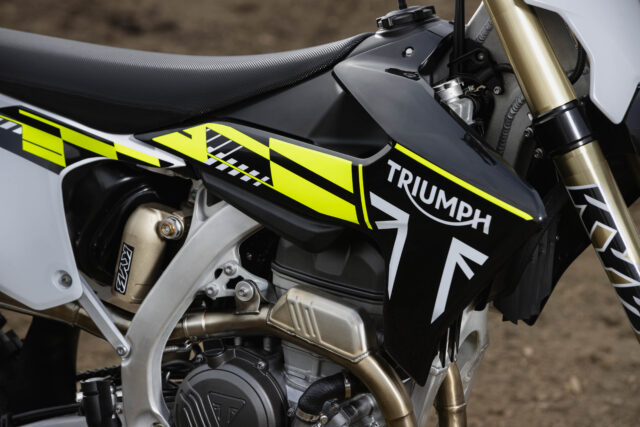 Originally developed entirely by Triumph in close collaboration with racing champions including Ricky Carmichael and Iván Cervantes, the four-stroke model is a ground-up design first released in 2024. The performance racing powertrain and unique aluminum chassis are ultra compact and super light, with the best components on the market, already fitted out of the crate.