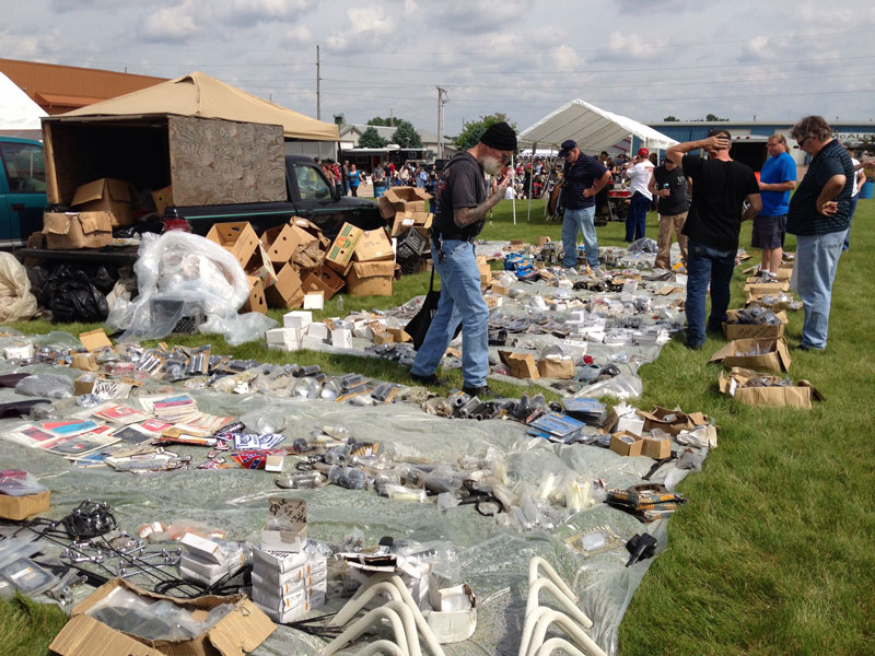 Parts, memorabilia and motorcycles are all on display in the Swap Meet. Unpredictable as the weather in what might be on a table or tarp, swap meets are a great place to make a few bucks selling what you no longer need, or maybe finding something for a current project.