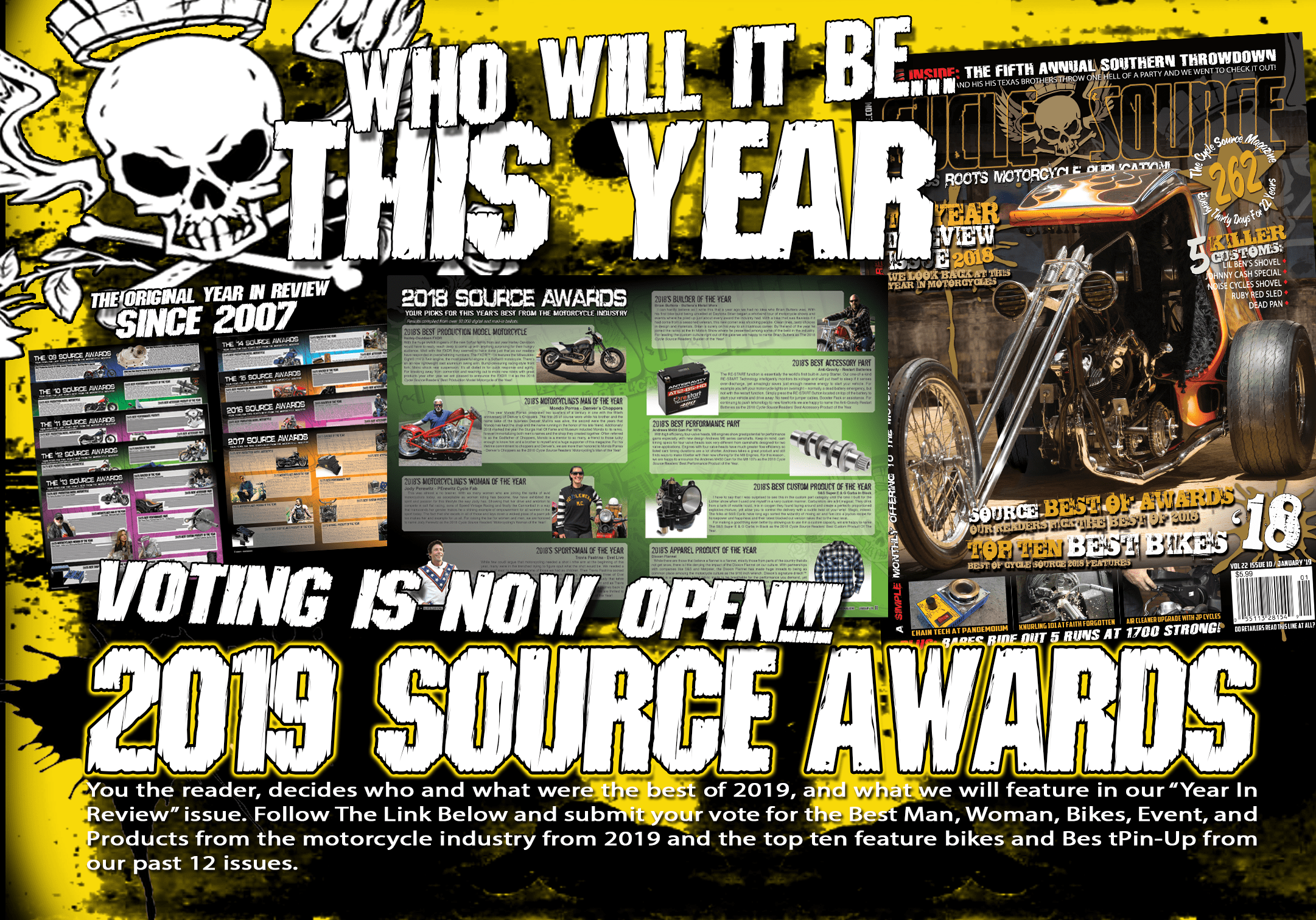 We’re asking for the people of the motorcycle community to help give credit where credit is due for our annual “Source Awards.” Follow the link below, only takes a couple of minutes and helps mark another great year doing what we all love. Hurry, only open for 2 days!!!!