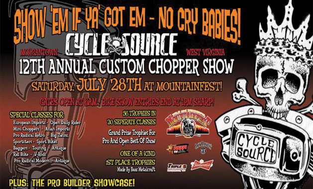Saturday July 28th Cycle Source Magazine will be throwing their 12th annual Custom Chopper Show in conjunction with the Mt. Fest Rally in Morgantown West Virginia. This is the big one, over a decade in awarding the hottest custom bikes from all over the Eastern United States and this year we will be stepping it up. In addition to the prizes and 57 trophies in 25 separate classes, we are giving away 2 custom crafted Champion Leather Kidney Belts. These incredible pieces of motorcycle art, made by our own staff member Lemme, will be awarded for both the Professional and Open Best Of Show winners. Of course the standard handmade trophies from Baas Metal Craft will be awarded for all first place radical class finishers.