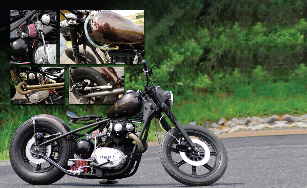 Oil tank: Pandemonium “E-Bomb” headlight: Very Heavily Mod. Stock XS650 taillight: Pandemonium “A-BRKT” Photographer: Chris Callen