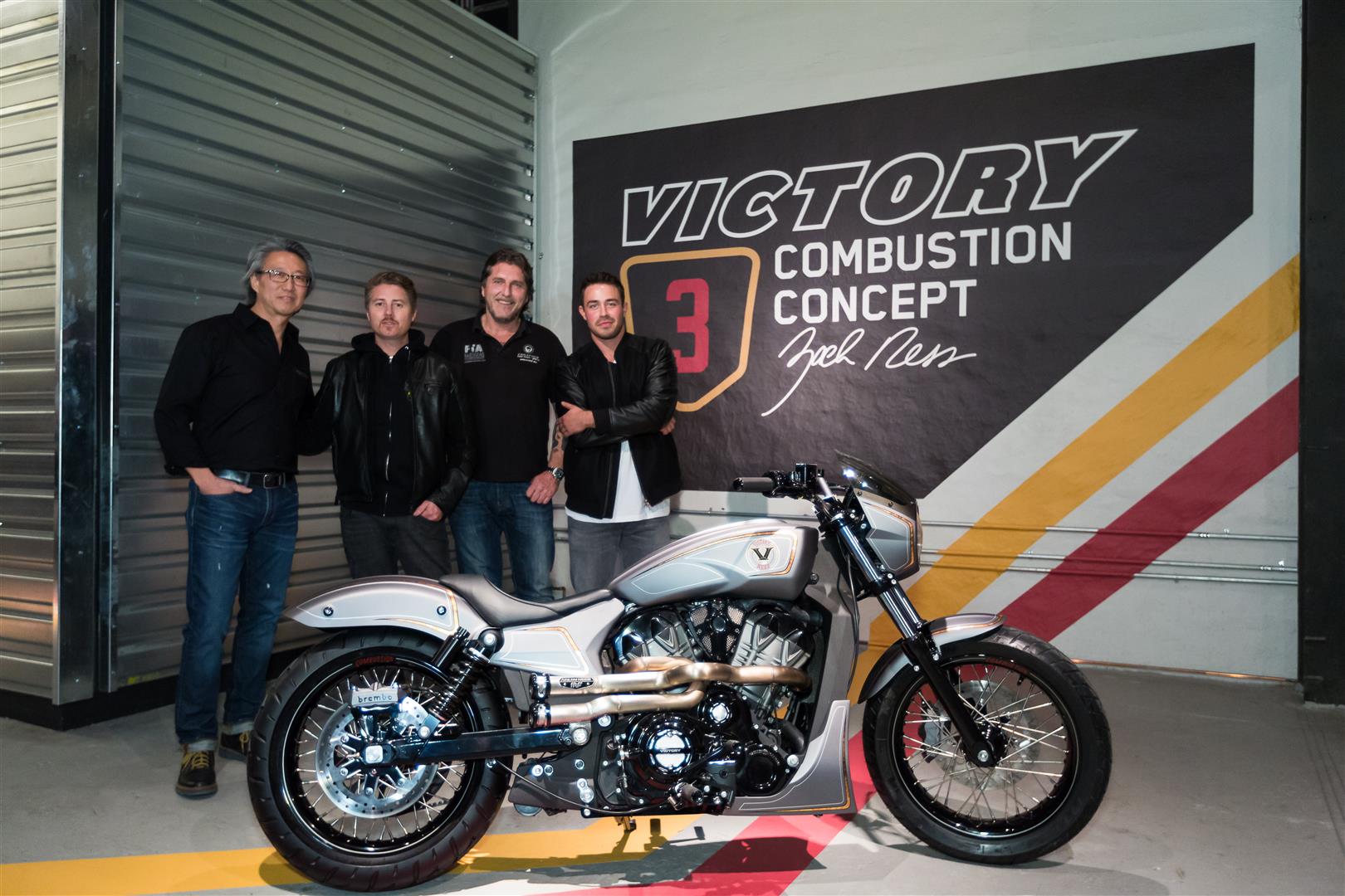 Victory Motorcycles revealed the final installment in their 1200cc concept series at the International Motorcycle Show in New York City. This concept, called “Combustion,” is powered by the production version of the engine that made its debut last month at EICMA in Milan. It was built by Zach Ness of Arlen Ness Motorcycles in Dublin, California and revealed at the Unions Garage in Brooklyn, NY just prior to its public showing at the International Motorcycle Show in New York City.